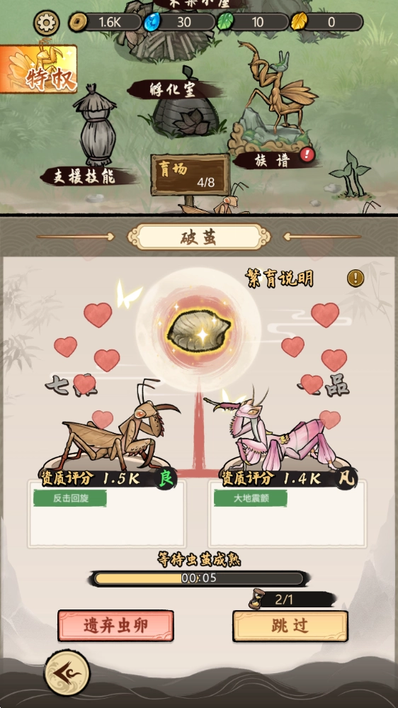 24小时不停歇地繁衍!随机孵化出「机甲螳螂/德鲁一螳/邓布利螳」这类上百种战斗单位,每一颗虫茧都藏着未知的惊喜!