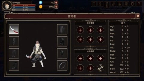 4、点击右上角头盔形状的按钮,就能查看角色所穿戴的装备和各项能力值。