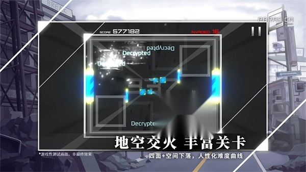 1、启动Paradigm Reboot,进入游戏界面后,玩家能够自主挑选想要挑战的曲目,并选择对应的难度; 2、在游戏加载的过程里,会展示出相关的插画以及谱面设计的制作者信息。