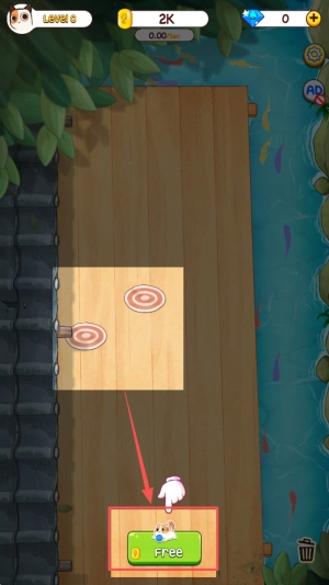 3、使用「Free」初始金币购买第一只猫咪,将其放置在房间内即可自动赚取金币(0.00/5秒)。