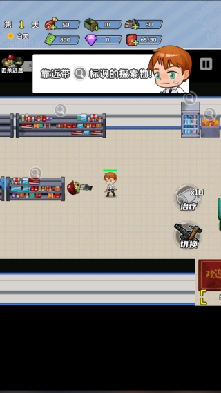 3、进入便利店后,点击搜索按钮来标记探索物,随后在便利店内移动,搜寻各类丰富的物资。