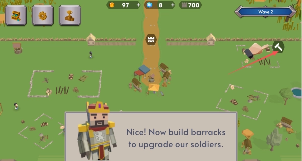 4、建造时优先选择提示中的兵营,它是提升士兵等级的核心建筑,能让后续战斗拥有更强大的作战能力。另外要注意地图上规划好的建筑区域,对建筑进行合理的布局安排。