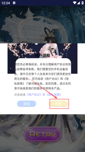 1、阅读协议:仔细阅读用户协议与隐私政策后,点击“同意”按钮以继续后续操作。