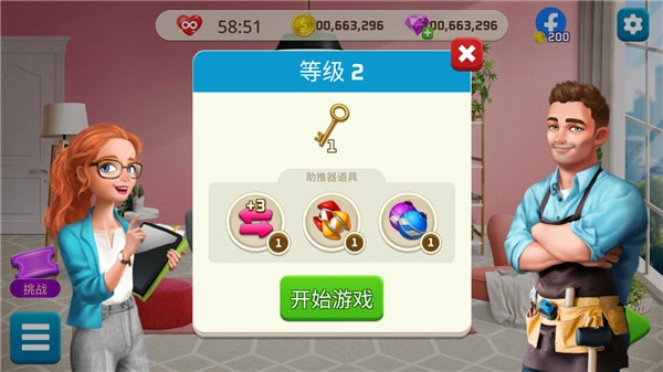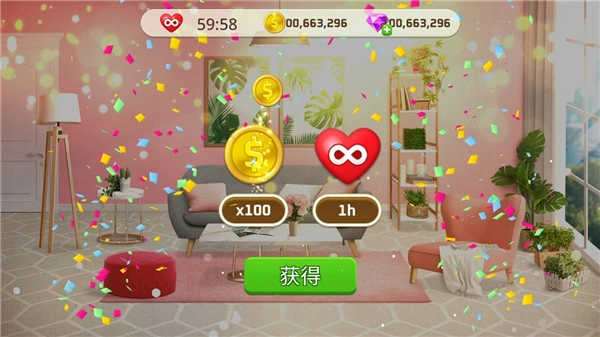 3.玩家需要借助三消游戏来收集金币,再用这些金币购置家具和装饰品,以此帮助完成你的设计方案。