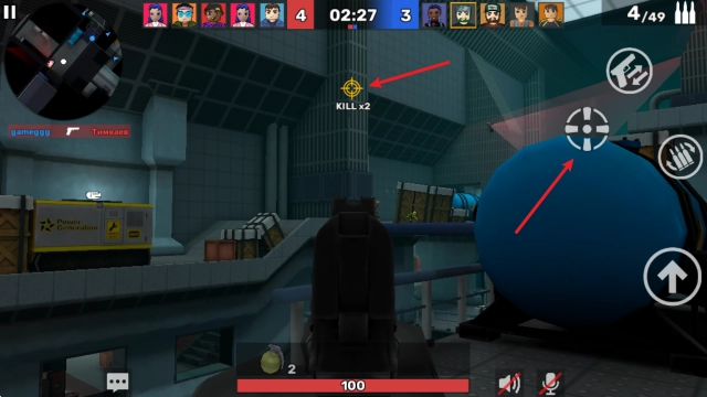 4、点击右侧的准星即可进行瞄准,击杀目标后中间区域会显示击杀图标。
