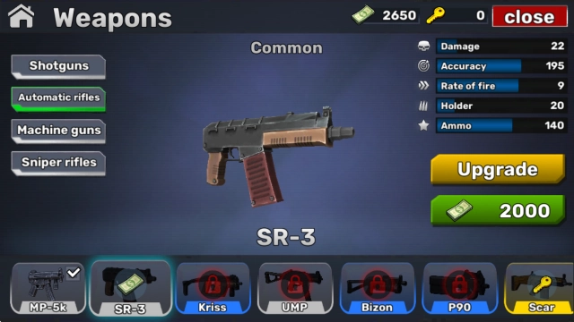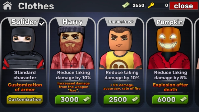 游戏内提供40种不同类型的武器供玩家搭配,玩家还能通过升级来提升武器性能,也可以为武器更换充满个性的皮肤。
