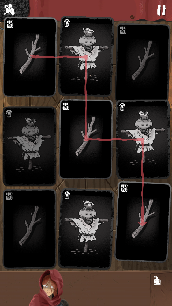 3、每个回合,你都得至少挑选2张牌,通过点击这些牌来构建一条路径。路径能够从任意一张卡牌出发,不过只能连接相邻或者斜向相邻的卡牌。