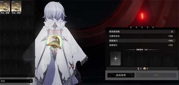4、在当前版本中,角色的魔之楔属性重要性远超其他属性。当你打开角色面板时,能看到几个被黄色高亮标注的属性,这些是系统推荐主堆的属性,但实际上这未必是最理想的搭配方案。关于配装,可遵循这样的公式:中心魔之楔选择“退避”;左右两侧的魔之楔组合为1个【属性专属】、1个【狮鹫】、1个【百首】、4到5个【契约者】,再加上1个自由选择的位置。
