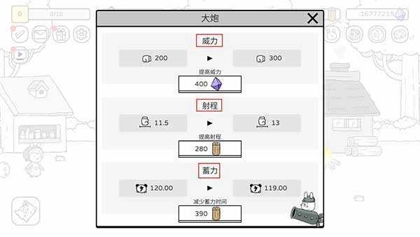 4、升级大炮威力;