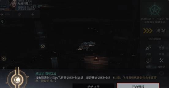2、完成教程后,我们的克隆飞行员顺利取得了专属执照,新伊甸的旅程就此正式开启。游戏初始阶段,玩家会置身于一处空间站内,同时会收到系统弹出的提示——询问是否参与新手飞行员训练课程。