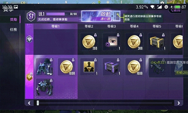 2、除了基础的每日任务外,通行证里也设有任务,玩家完成后同样能获取成长点。玩家只需在通行证中找到第二栏的任务入口并点击进入,就能查看本赛季需要完成的任务内容。赛季任务每日可领取9个,数量有限,且完成难度相较于日常任务会更高一些。