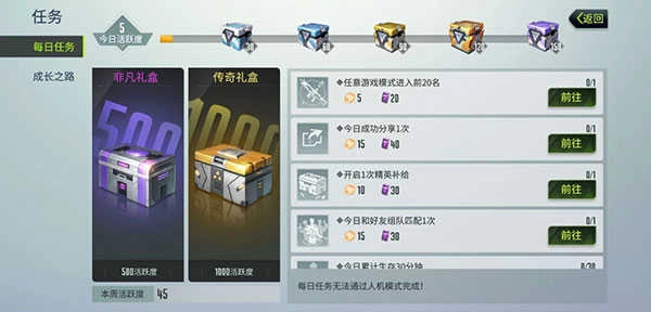 4、实际上玩家即便不了解某些任务,也能获取成长点经验。大家可以多参与战斗,但这里指的并非人机模式的对战,而是玩家之间真实的竞技比赛。玩家多投身这类战斗,往往会在不经意间完成一些任务,与此同时还能提升实战中的作战技巧,以及应对突发袭击的能力。