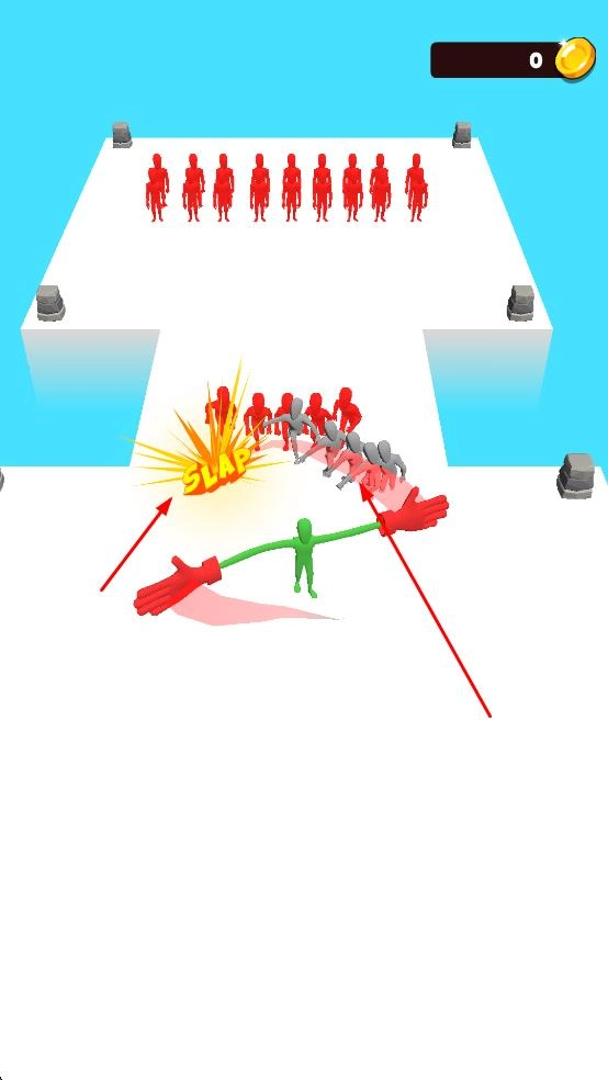 1、橡胶特性独特设定:玩家的手部拥有橡胶般的柔软质感与弹性,移动速度越快,手部拉伸的长度就越长,甚至能弹开弓箭手射出的箭矢。这一独特设定使操作过程充满不确定性,既提升了游戏的趣味性,也增强了策略性的考量。