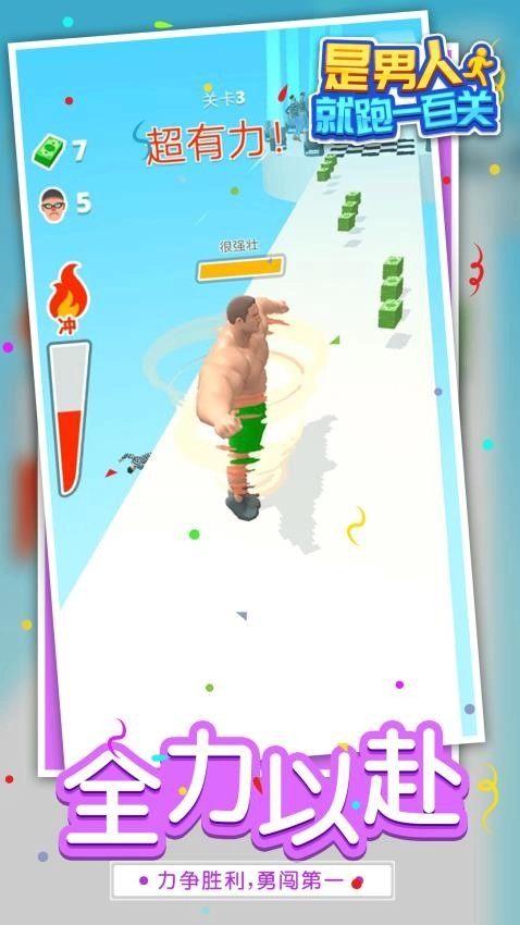 《是男人就跑一百关》是一款趣味十足的休闲跑酷游戏。玩家将操控个性鲜明的肌肉猛男开启热血刺激的跑酷冒险,途中会遇到形形色色的围墙障碍,全力冲刺冲破所有障碍陷阱到达终点,就能获得基础结算奖励。游戏里独特的花式特技可随时点击体验,几乎每关都设有特殊的花式任务,完成特技表演就能获取额外资源道具,带来极为畅快的操作感受。各类障碍物都能直接粉碎突破,只要保证角色状态与强度的提升,就能冲破一切阻碍,不会受到过多限制,整体趣味性和可玩性都非常强。