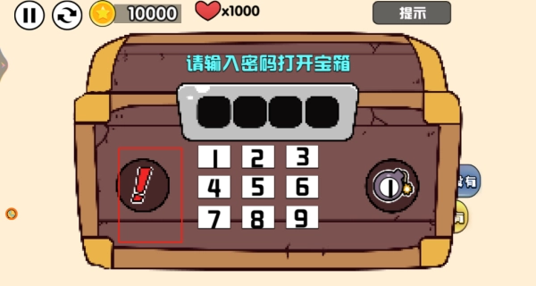3、另外还有一些特殊关卡,像这种需要输入密码才能开启宝箱的关卡,如果不清楚密码是什么,就可以点击这个提示按钮。
