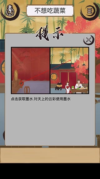 成就2:点击红色区域,拿到墨。墨往天空上用
