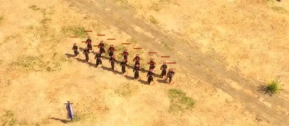10散兵的适用场景:对手采取快升时代(ff)的策略;对手以步兵单位为主要兵力。