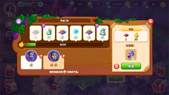 3、合成出对应的物品后,点击左下方的背包就能完成订单任务,完成订单可获得魔法棒。
