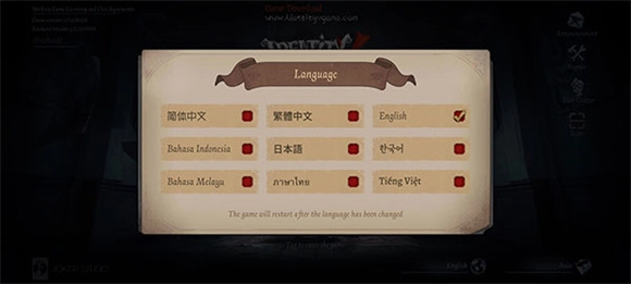 2、游戏提供英文、日语、中文等多语言支持,便于不同语言背景的玩家都能顺畅体验游戏。