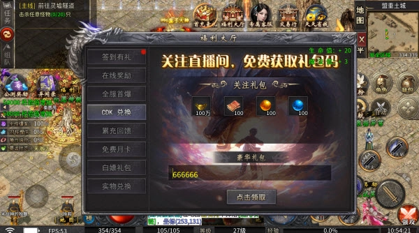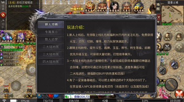 1、新人上线后,可先领取上线礼包以及福利大厅里的关注礼包,免费获取元宝、灵符、切割、爆率等奖励,助力玩家快速开启游戏征程。