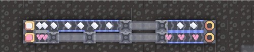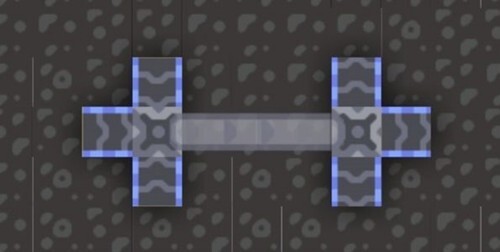 要注意B不接受带输入的情况,A同样不接受桥下的带输入,因此在输出资源的时候,通常需要额外放置一个传送桥单体,这样才能让最外侧(就像上图里最上方那一排共四个的钻头)的钻头也可以正常进行资源输出。