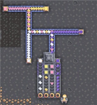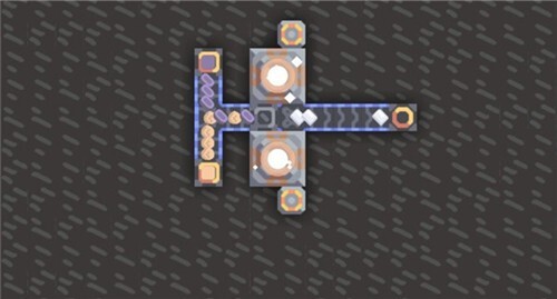双原料的代表是小硅厂,除此之外还有爆炸混合物、玻璃、魂灵修理机等。没有产出的时候,纵向的传送带可以拆除。只做其中一边也是可以的~