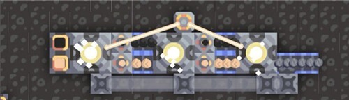 这里也是放宽了对材料的要求,没有追求最高效率,而是让蓝图的布局更美观。我觉得设计比较巧妙的地方是那两个沙子的分类器。原本上方没有抽水机时,沙子是直接向下输送的,一个分类器要同时承担沙子、硅和煤三种材料的分配工作;加装抽水机之后,它还能负责把煤向下运输,把硅往左右两侧输送。