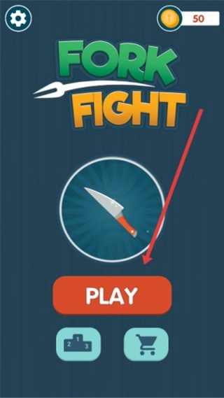 2、点击PLAY按钮进入游戏主界面,确认当前武器后,即可开启披萨切割挑战。游戏提供前叉、刀具、剑等多种射击方式,玩家能在其中体验丰富多样的游戏元素。