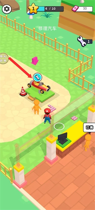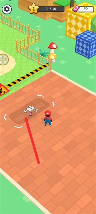 1、进入场景后,操控角色移动至箭头所指的资源点,即可对门票售卖处进行装修,以此积累资源。