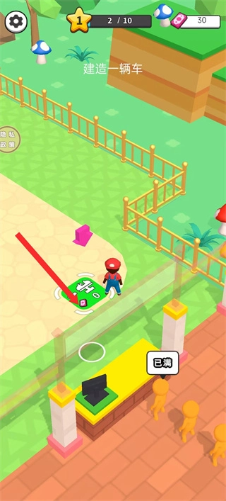 2、根据指引移动到建造点,完成建造一辆车的任务操作,解锁场景内的新设施。