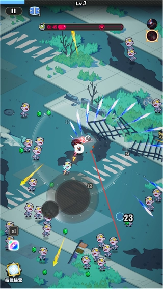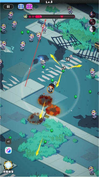 核心玩法采用“自动射击+滑动走位”模式,无需手动瞄准开火,角色靠近敌人即触发疯狂输出,轻松实现大范围清屏,体验尸潮瞬间湮灭的极致割草快感。