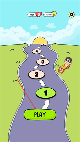 1、在游戏的关卡选择界面,点击绿色的PLAY按钮,即可进入第1关的游戏环节,开始该关卡的挑战任务。