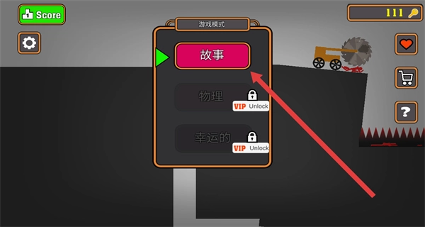 1、在游戏模式界面,点击故事模式,进入剧情向的平衡冒险关卡,开启火柴人死亡顺序猜测挑战。
