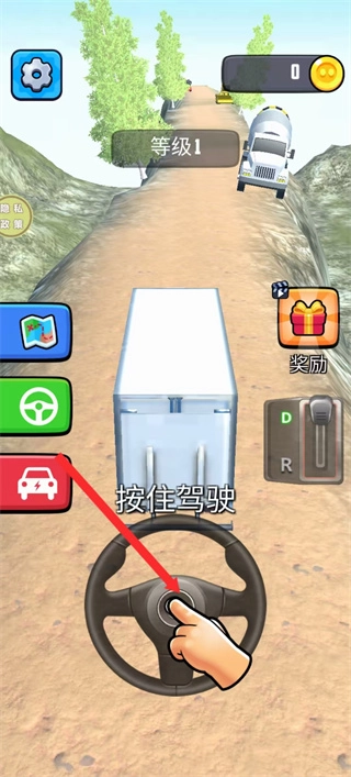 1、进入驾驶关卡后,按住方向盘的操控区域,启动车辆开始行驶,开启关卡的驾驶挑战。