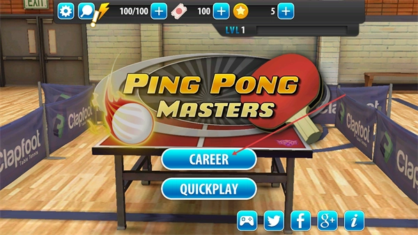 1、在乒乓球大师的游戏主界面,点击CAREER按钮,即可进入生涯模式的游戏流程,开启乒乓球赛事的生涯挑战。