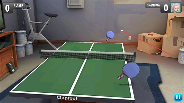 3、进入对战后,操控己方球拍移动,击打飞来的乒乓球,确保将球打过球网,避免球落地,以此与对手GRANDMA进行回合对抗。