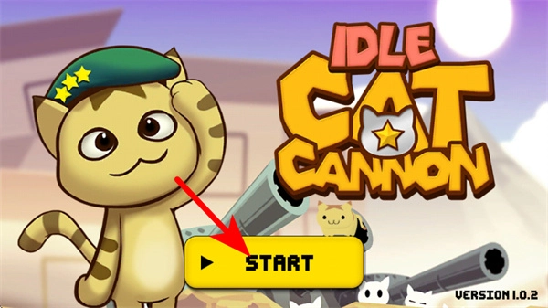 1、在启动界面点击START按钮,进入游戏的核心玩法场景,开启猫咪大炮的养成流程。