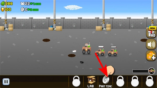 4、切换到PART TIME界面,解锁兼职类功能,获取额外资源以支撑设施升级与阵容养成。