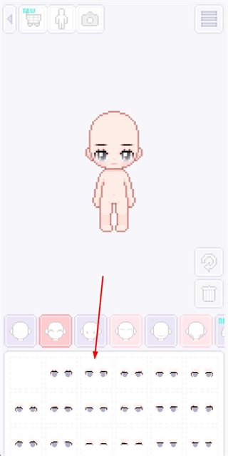 2、处于角色装扮界面、点击眼睛选项、更换角色的眼睛样式、推进当前的装扮流程。