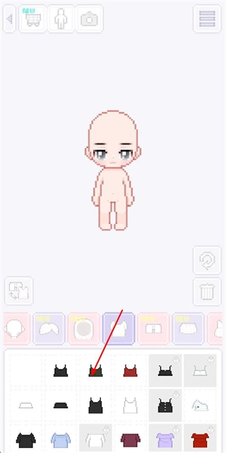 3、处于角色装扮界面、点击上衣选项、更换角色的上衣款式、继续进行装扮操作。