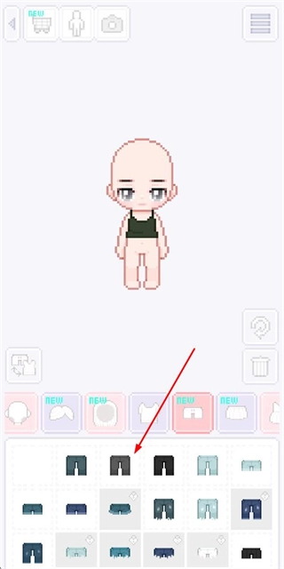 4、处于角色装扮界面、点击裤子选项、更换角色的裤子样式、完成该步装扮步骤。