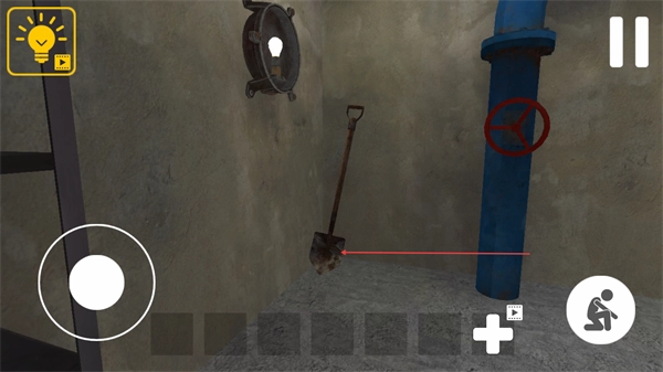 3、拾取场景中的铁锹道具,收集解谜物品,为后续操作做准备。