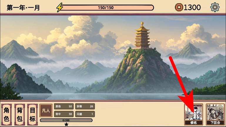 2、在游戏主界面,点击右侧修炼选项,进入修炼技能页面。