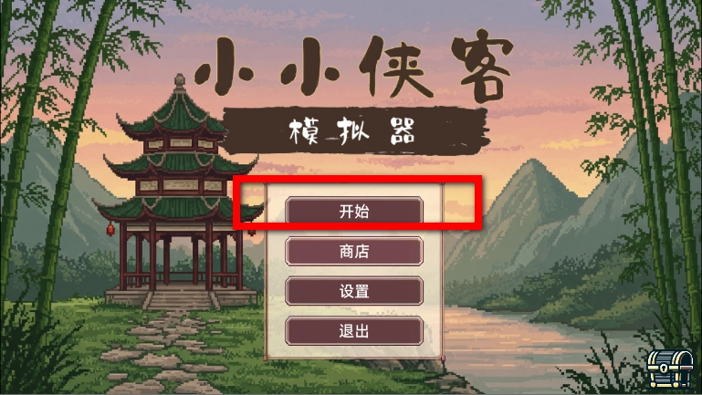 1、在小小侠客模拟器首页,点击开始按钮,进入游戏主界面。