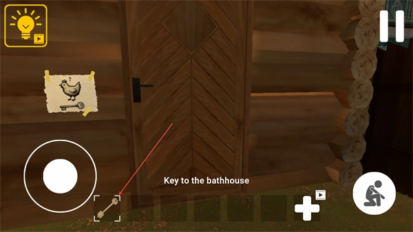 1、在庭院里操控角色移动,逐步靠近木屋所在的区域,留意并寻找能够进行互动的物品,以此推动解谜探索的进程。