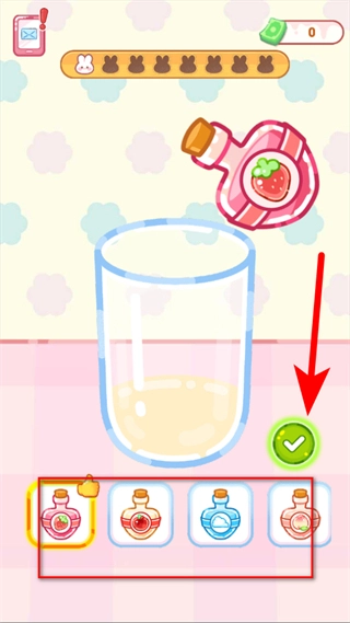 3、在饮品制作界面,选择对应的调味瓶如草莓味添加到容器中,完成饮品的调制。