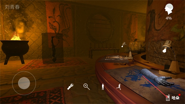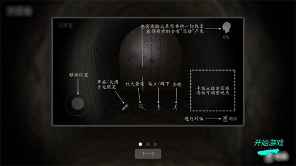 1、进入该解谜场景后,操控左侧的移动按钮控制角色在隧道中行进,同时可使用界面中的手电筒道具照亮环境,便于观察场景细节寻找线索。