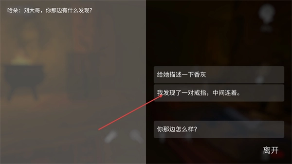 4、当进入与哈朵的对话界面后,选择“我发现了一对戒指,中间连着”这类对应的对话选项来回应,就能推动剧情发展,同时获取更多和谜题解答相关的提示。