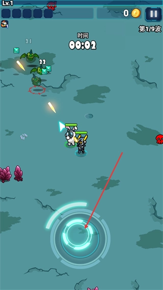 1、进入战斗后,操控角色移动攻击场景中的蝙蝠类怪物,同时收集掉落的绿色晶体,战斗过程中注意观察时间进度,及时清理怪物推进关卡。