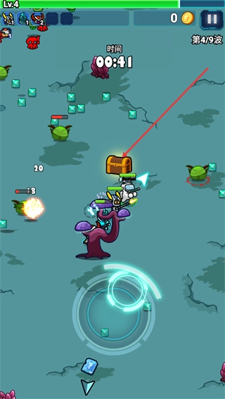 3、推进到第4/9波时,击败怪物后会出现宝箱道具,控制角色移动到宝箱位置获取奖励,这些奖励可用于提升队伍强度,助力后续波次的战斗。